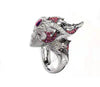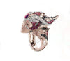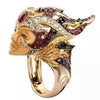 Décoré de bijoux luxueux, cette bague fantaisie possède une monture à l'effigie d'un masque de carnaval vénitien. Les pierres et diamants incrustés à la main dessinent les magnifiques détails de ce visage de fête. Un magnifique travail de joaillier offre à cet anneau une élégance sans pareil. Idéal pour sublimer une robe de soirée chic ou accessoiriser une tenue luxueuse, ce tour de doigt est un véritable bijou à porter en toutes occasions pour attirer les regards charmés et admiratifs.