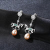 Boucles d'oreilles pendantes cheval de carrousel en argent 925 pour femme, bijoux fins, en perle d'eau douce naturelle. Fermoir de type poussette. Bijou élégant pour soirées chics et événements tendance. Joaillerie fantaisie fine femme.