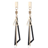 Très chic, moderne et design, cette boucle d'oreille fantaisie se veut longue et se porte pendante. Or et métal noir s'entremêlent au travers de formes géométriques pour apporter la touche finale à une tenue chic féminine. Elle dispose d'un fermoir doré au style papillon pour s'accessoiriser rapidement.