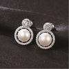 Boucles d'oreilles en argent Sterling 925, incrustation de Zircon, perles d'eau douce naturelles. Fermoir de type poussette. Bijou élégant pour soirées chics et événements tendance. Joaillerie fantaisie fine femme.