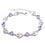 Cet élégant bracelet est le bijou parfait pour habiller avec élégance et chic votre poignet et rehausser votre look féminin. La pierre d'améthyste sertie, alternée avec des doubles cœurs d'argent, en fait un bijou noble et élégant. Réglable, ce bracelet argent fantaisie, s'attache avec un fermoir mousqueton sur une chainette d'extension.