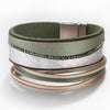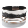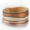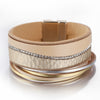 Mêlant le style semainier et manchettes, ce magnifique bracelet en cuir couleur café au lait possède une esthétique élégante, sublimée par les fines perles de diamants en ornement. Simple à porter au poignet, il dispose d'un fermoir aimanté qui permet de l'accessoiriser à une tenue en quelques secondes.