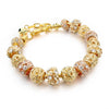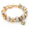 Cerclé d'or, de breloques et de diamants, ce bracelet fantaisie offre à sa porteuse un style chic et glamour. Le fermoir à mousqueton dispose d'une chaine réglable idéale pour être ajusté au tour du poignet selon le style désiré. Élégant, ce bracelet donne la touche ultime à la tenue pour attirer vers vous les regards charmeurs et admiratifs.